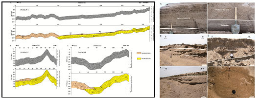 图1 沙嘴滩坝探地雷达剖面及内部沉积结构特征